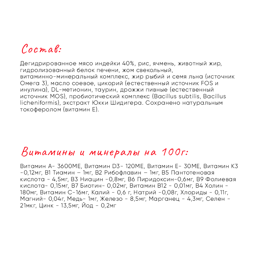 - Мясо индейки – 100% гипоаллергенный и диетический продукт, отлично усвояемый организмом питомца.